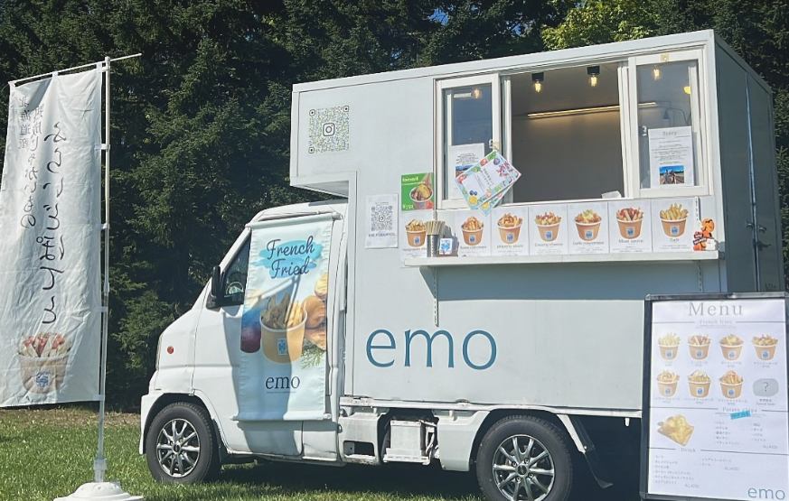 フライドポテトを販売しているキッチンカー。8種類の味から選べます。