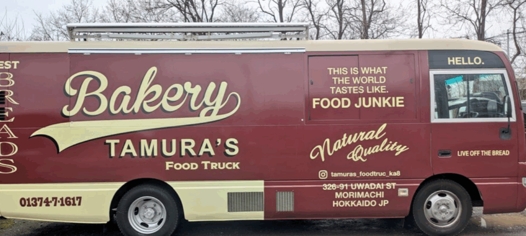 噴火湾のホタテを使ったホタテカレーパン、地元ひこま豚を使ったハンバーグカレーパンなどを販売しているキッチンカー。9時から18時まで営業しており、火曜が定休日です。