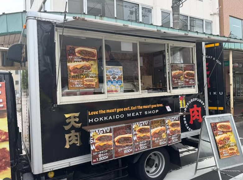 ステーキサンドを販売しているキッチンカー。北海道全域で活動しています。