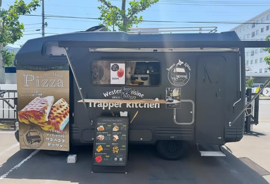 ワンハンドピッツァを販売しているキッチンカー。北海道全域に出店可能です。